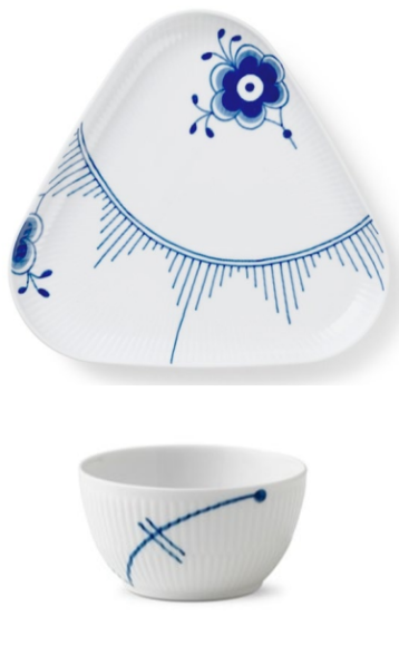 Blå Mega Riflet, elegant trekant fad. Yderst alsidigt og perfekt til både snacks og små tapas-serveringer.