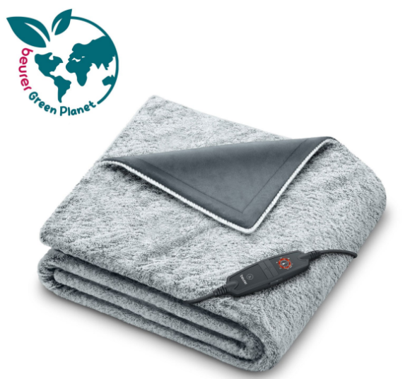 Stort varmetæppe i ultrablød økologisk microfleece. Vælg mellem 6 lunende varmeindstillinger direkte fra fjernbetjeningen.