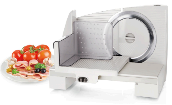 Knive i rustfrit stål Aftagelige knive Justering af tykkelse 0-15 mm Sikkerhedsafbryder til og fra Sikkerhedsfeeder/skubber Skridsikre fødder Diameter 165mm BPAfrit fødevarekontaktmateriale Opbevaring af strømkabel