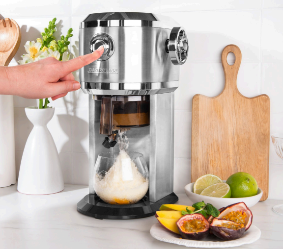 Oplev den autentiske smag af hawaiianske isfavoritter derhjemme med Gastroback Design Ice Shaver. Denne alsidige maskine giver dig mulighed for at skabe lækre "shave ice" og "snow cones" på ingen tid, mens den også åbner op for kreative muligheder såsom hjemmelavet slush ice, forfriskende cocktails og frugtrige desserter. Gastroback Design Ice Shaver giver dig også friheden til at fryse frugt, juice, kaffe, mælk eller yoghurt, og med dens justerbare rivestyrke kan du tilpasse konsistensen efter din præference, alt imens det udskifteligeraspeblad sikrer en konstant høj kvalitet. Med nem rengøring og opvaskemaskinesikre tilbehør og redskaber samt tre inkluderede isforme, er Gastroback Design Ice Shaver den perfekte tilføjelse til ethvert hjemmekøkken, der søger at skabe forfriskende og fantasifulde iskreationer. Sådan gør du: 1.FRYS FRUGT, JUICE, KAFFE OG MEGET MERE ¨2.HÆLD DEN FROSNE INGREDIENS I BEHOLDEREN 3.INDSTIL TIL HØJDEN AF PÅFYLDNINGSMÆNGDEN 4.INDSTIL TYKKELSEN PÅ SKRABEREN 5.PLACER ET GLAS ELLER KRUS NEDENUNDER 6.TRYK OG HOLD KNAPPEN NEDE FOR AT SÆTTE I GANG7.SERVER MED DET SAMME OG NYD •Kapacitet: Isbeholder - ca. 200 ml •Længde på strømkabel: ca. 80 cm