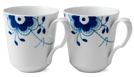 Et gammelt design blev nyfortolket for at skabe dette 37 cl krus til Blå Mega Riflet. På dette sæt af to krus er der håndmalet forstørrede elementer fra det musselmalede mønster i et kontemporært udtryk, der kan skabe særlige minder for to. Blå Mega Riflet er på en gang velkendt og forfriskende. Stellet er født af en modig nyfortolkning af det ikoniske Musselmalet Riflet og fortryller med sine grafiske og forstørrede sektioner af det musselmalede mønster. Siden Blå Mega Riflet blev designet i 2000 er stellet vokset sig til en ny klassiker inden for dansk design, og det iøjnefaldende stel er smukt i sig selv og i kombination med andre Royal Copenhagen stel.